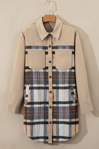 Pocketed Plaid Long Sleeve Mini Shirt Dress