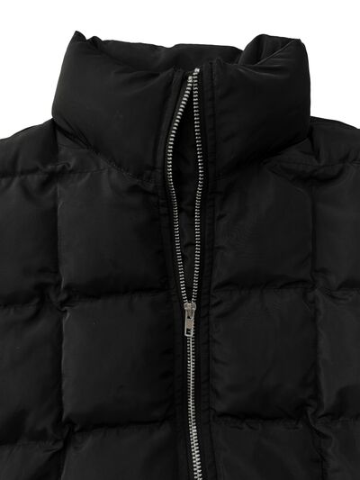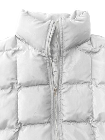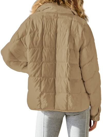 Pocketed Plaid Quilted Zip Up Winter Coat