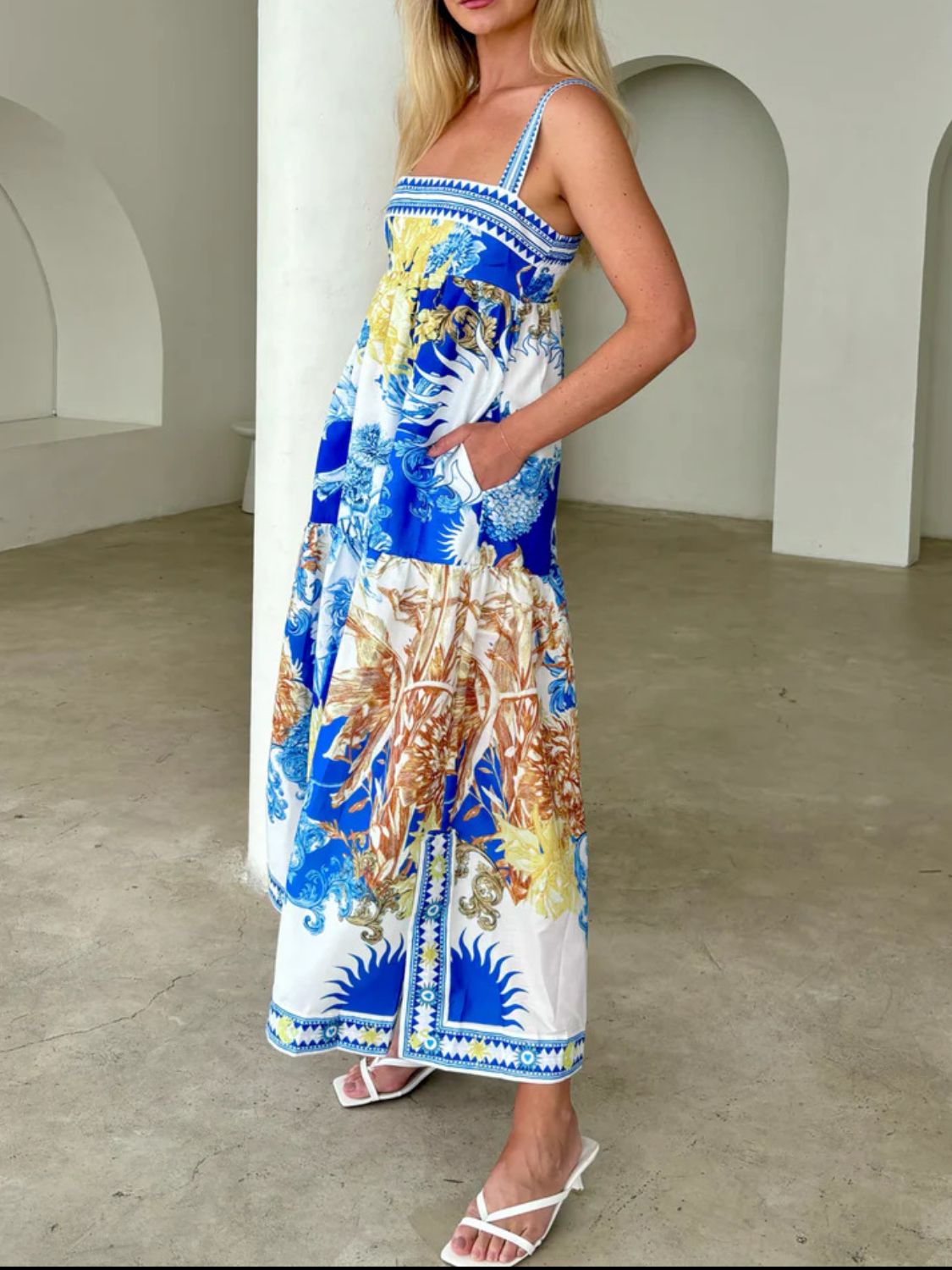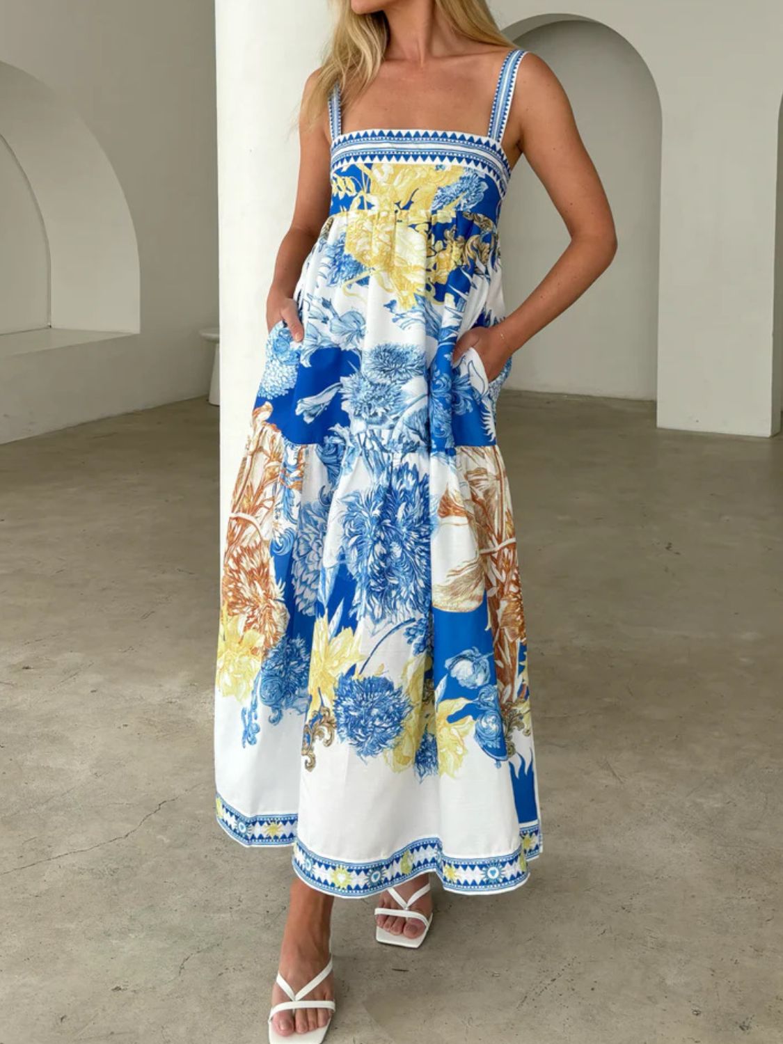 Pocketed Printed Sleeveless Cami Dress