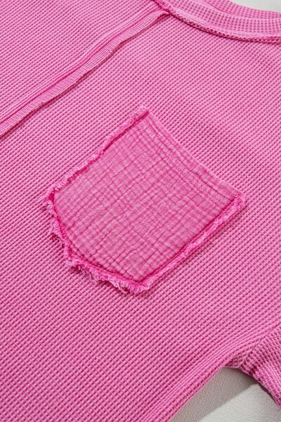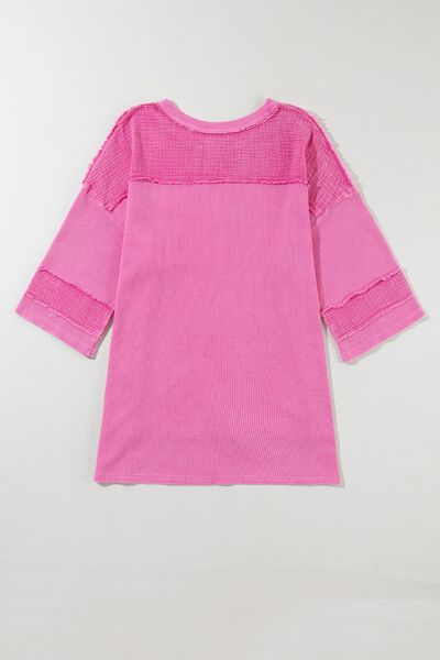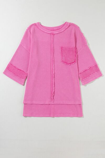 Pocketed Round Neck Three-Quarter Sleeve T-Shirt