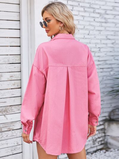 Pocketed Snap Down Dropped Shoulder Denim Shacket