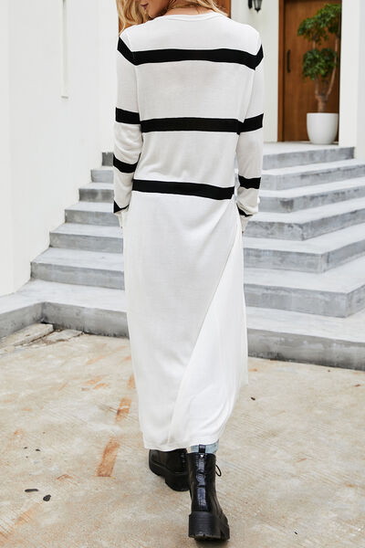 Pocketed Striped Button Up Cardigan
