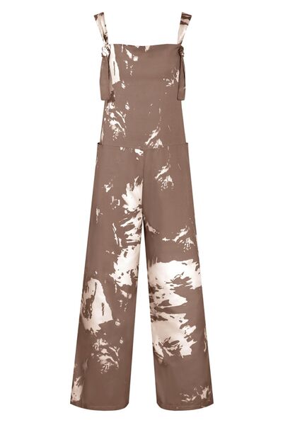 Pocketed Tie-Dye Wide Strap Overalls