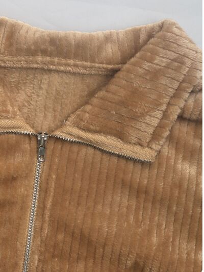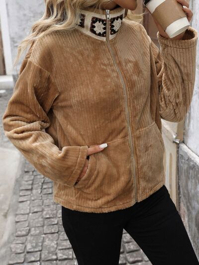 Pocketed Zip Up Collared Neck Long Sleeve Jacket
