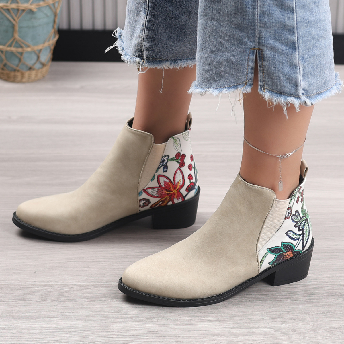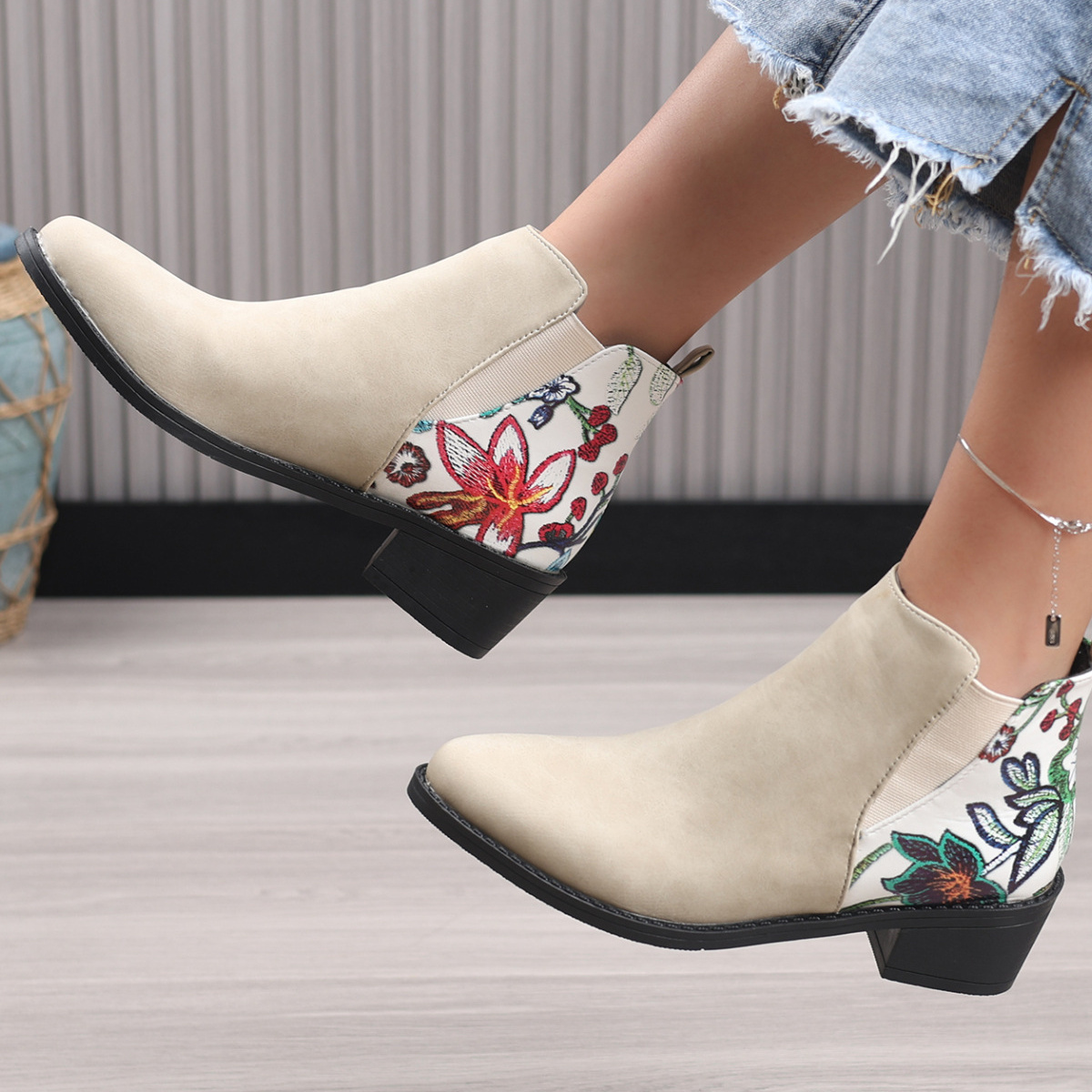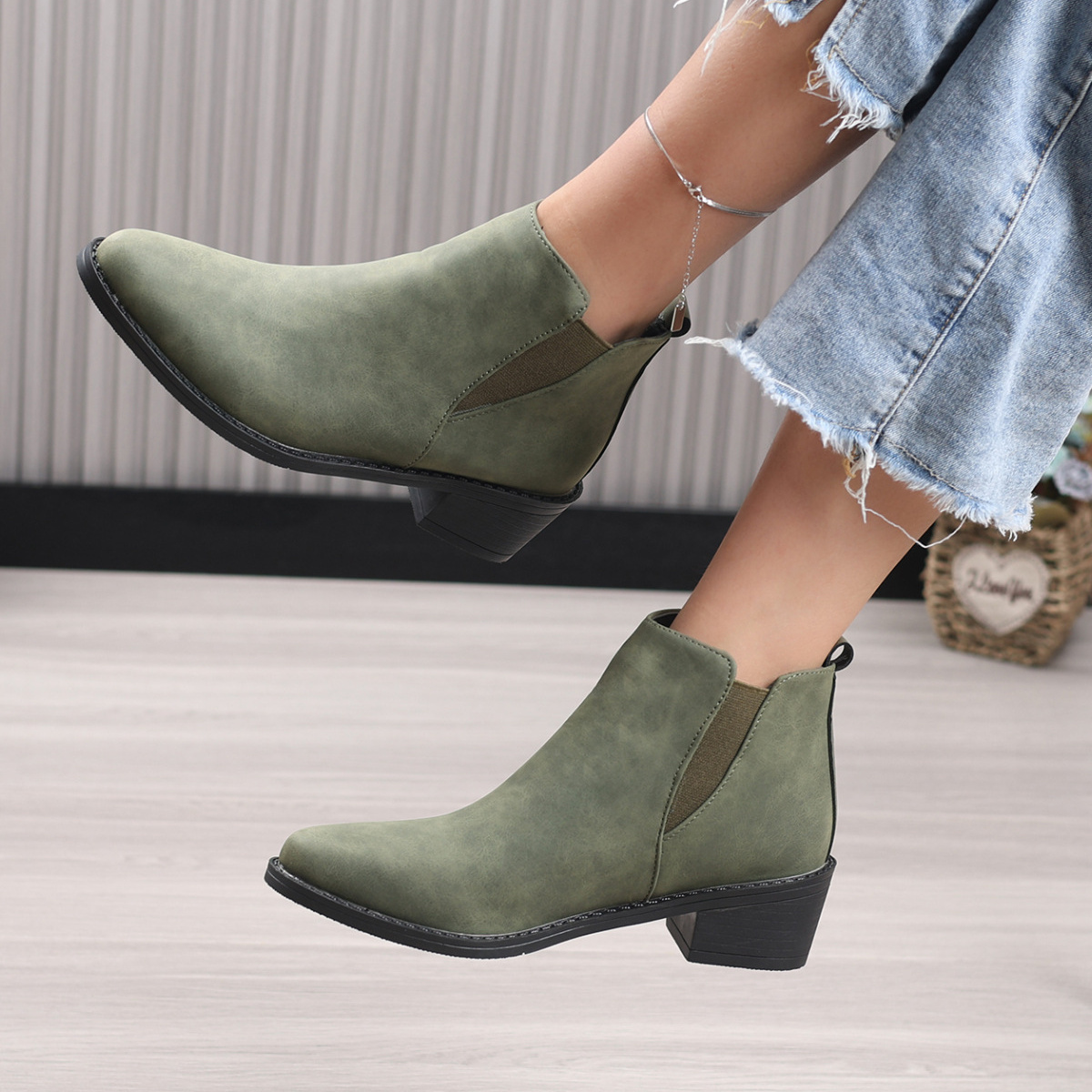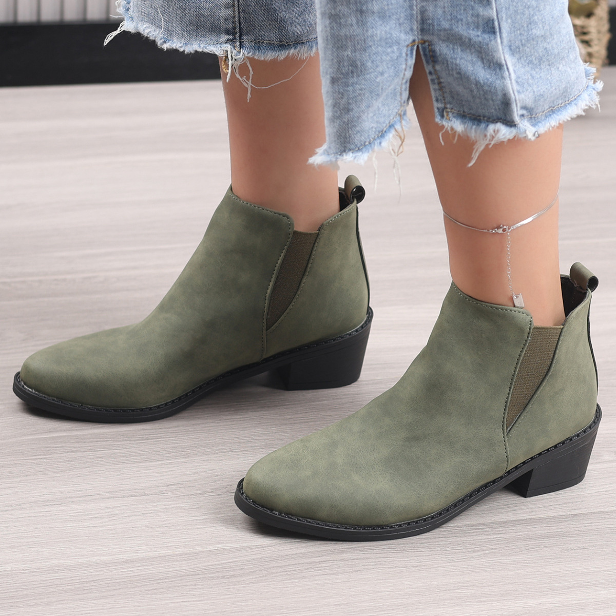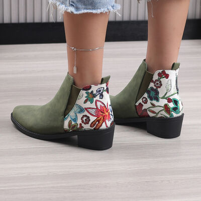 Point Toe Block Heels Ankle Boots