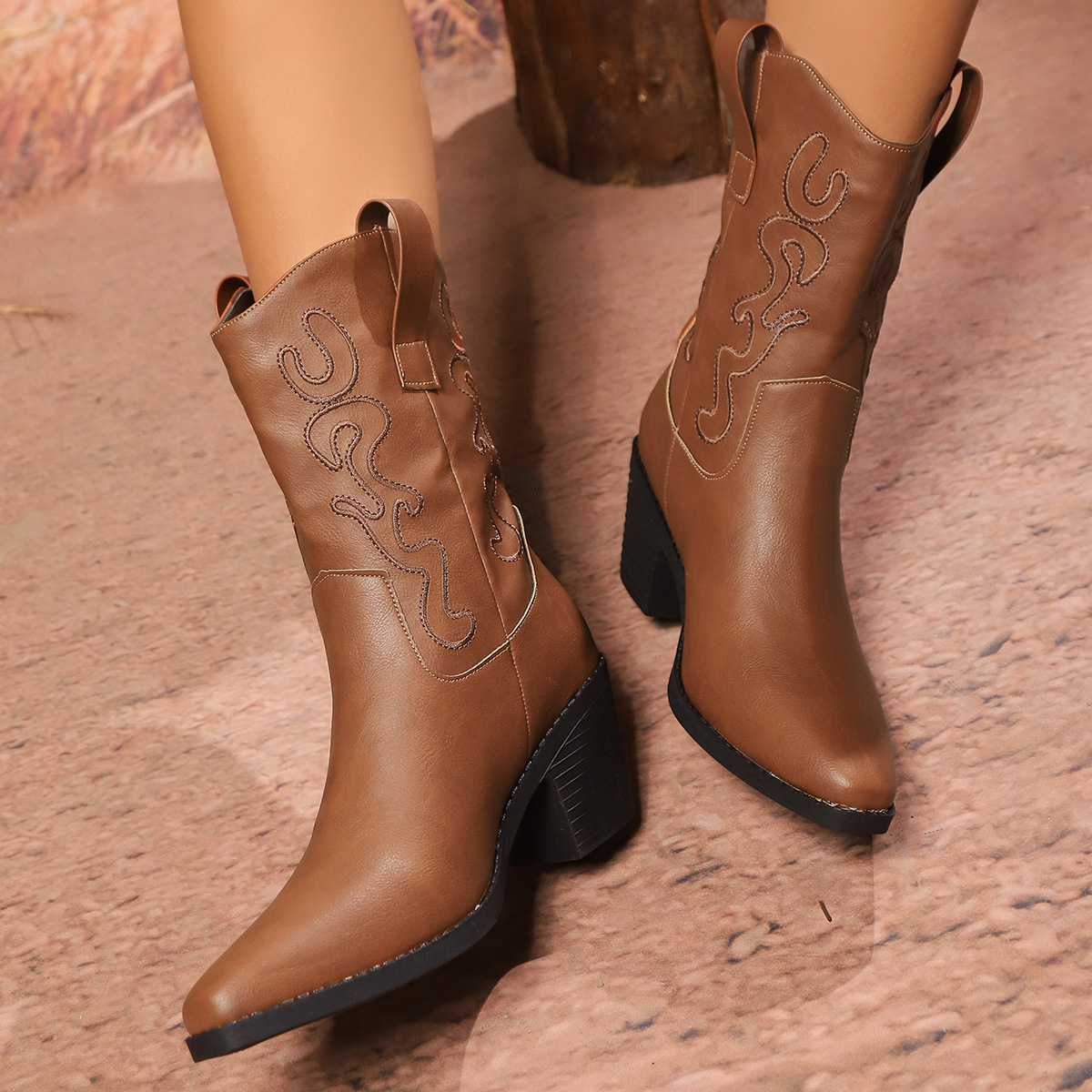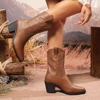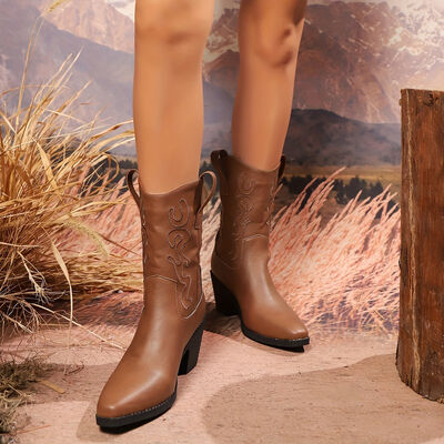 Point Toe Block Heels Boots