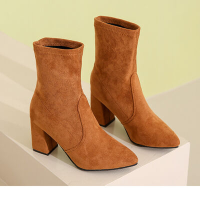 Point Toe Block Heels Boots