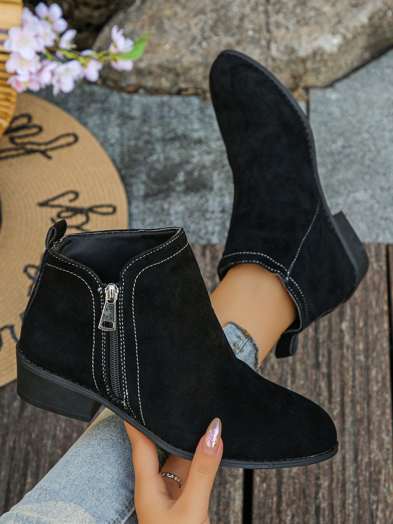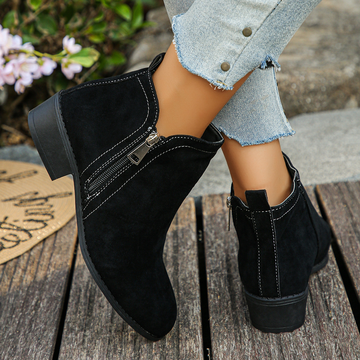 Point Toe Block Heels Boots