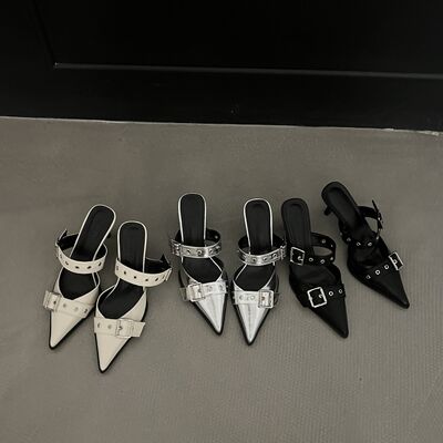 Point Toe Flare Heel Buckle Sandals