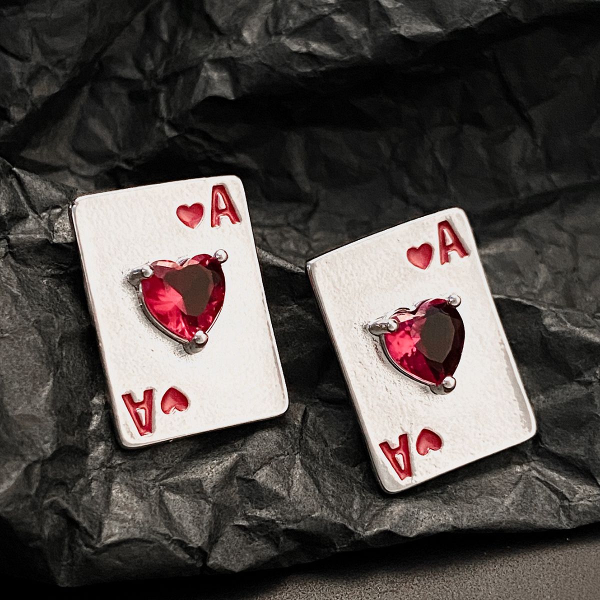 Poker Card Ace of Hearts Stud Earrings