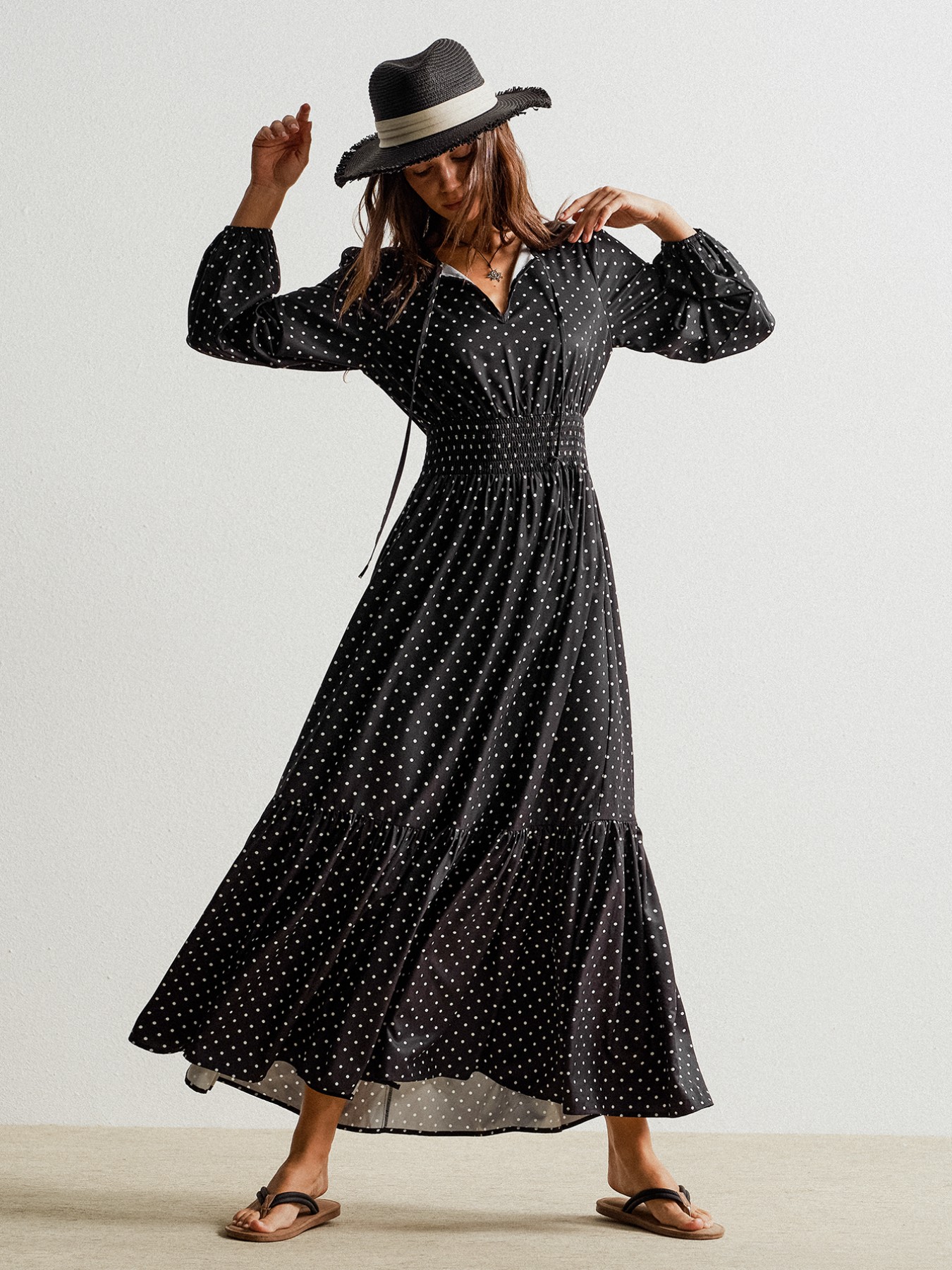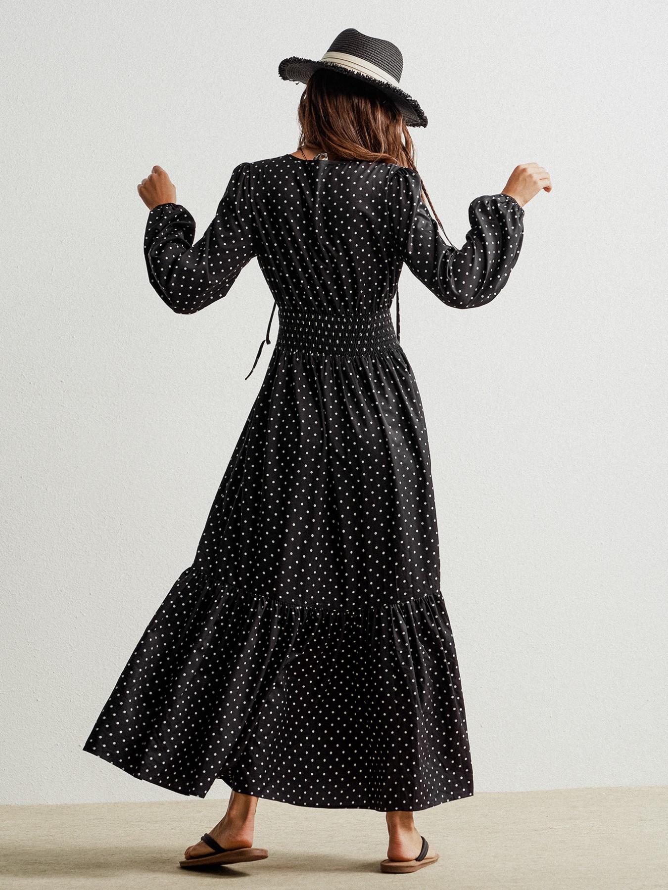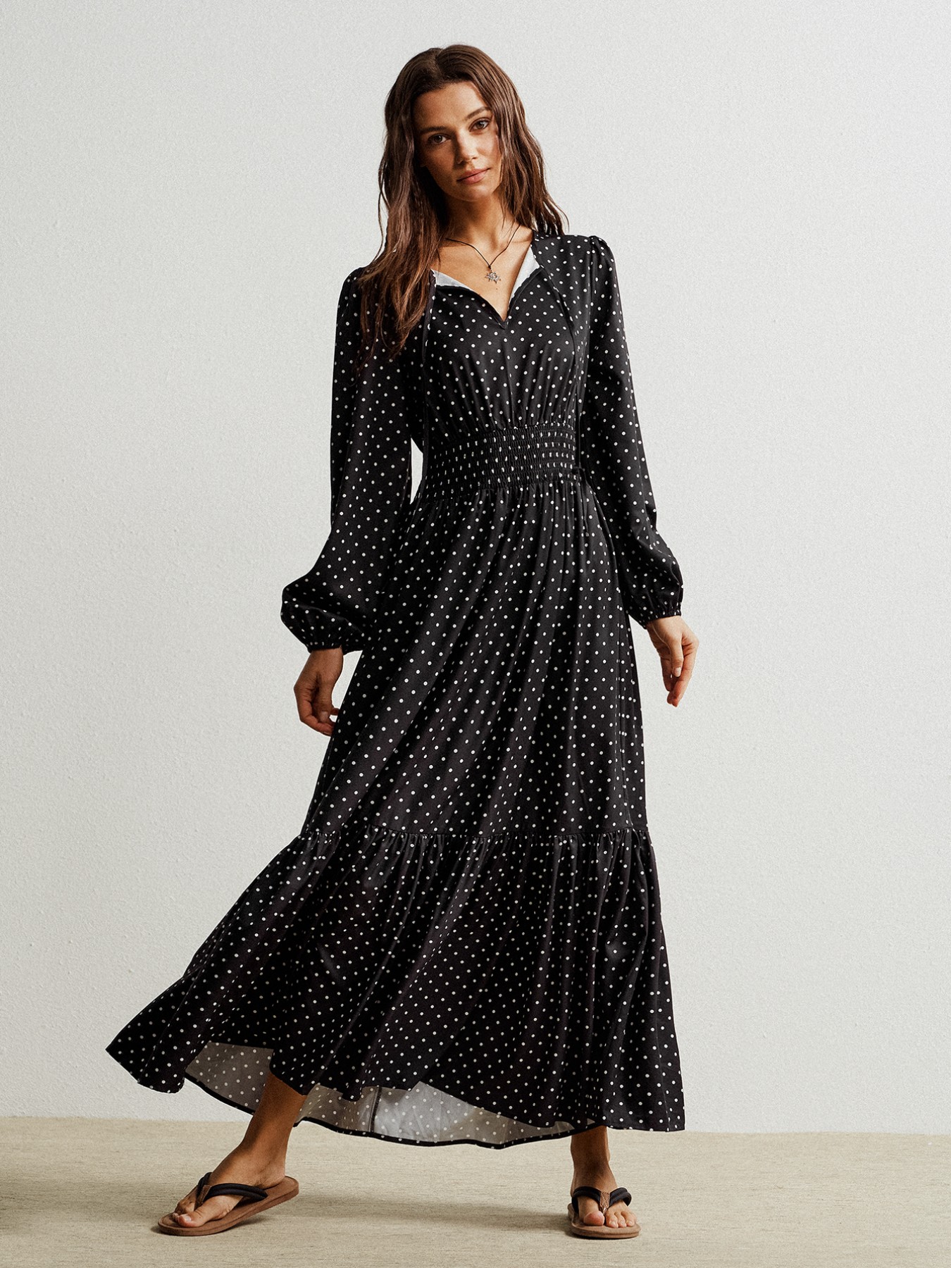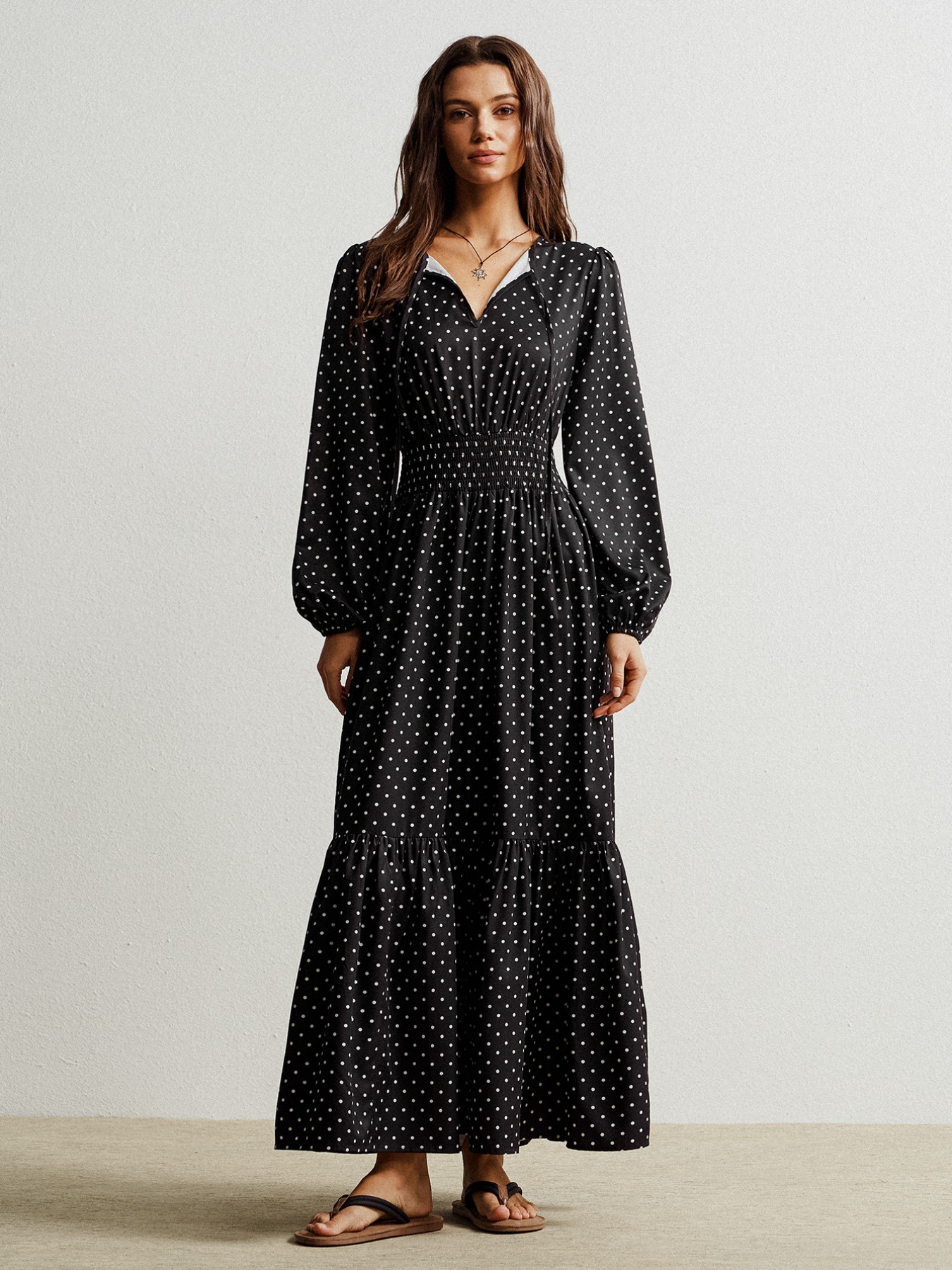 Polka Dot Long Sleeve Maxi Dress