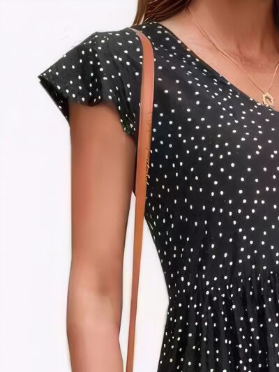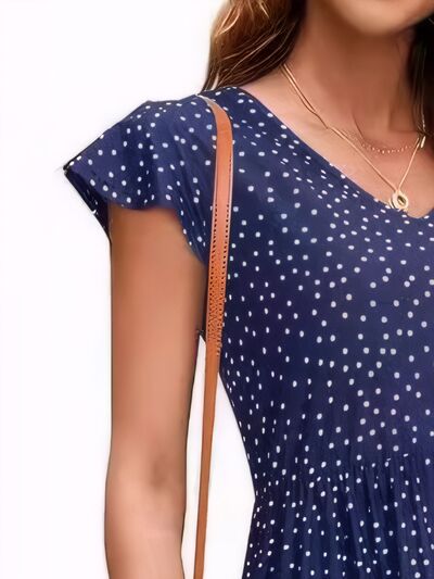 Polka Dot Ruffle Sleeve V-Neck Mini Dress