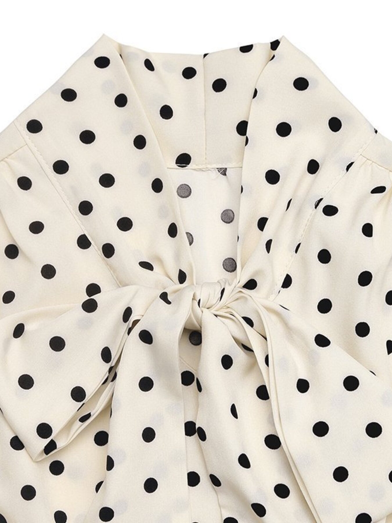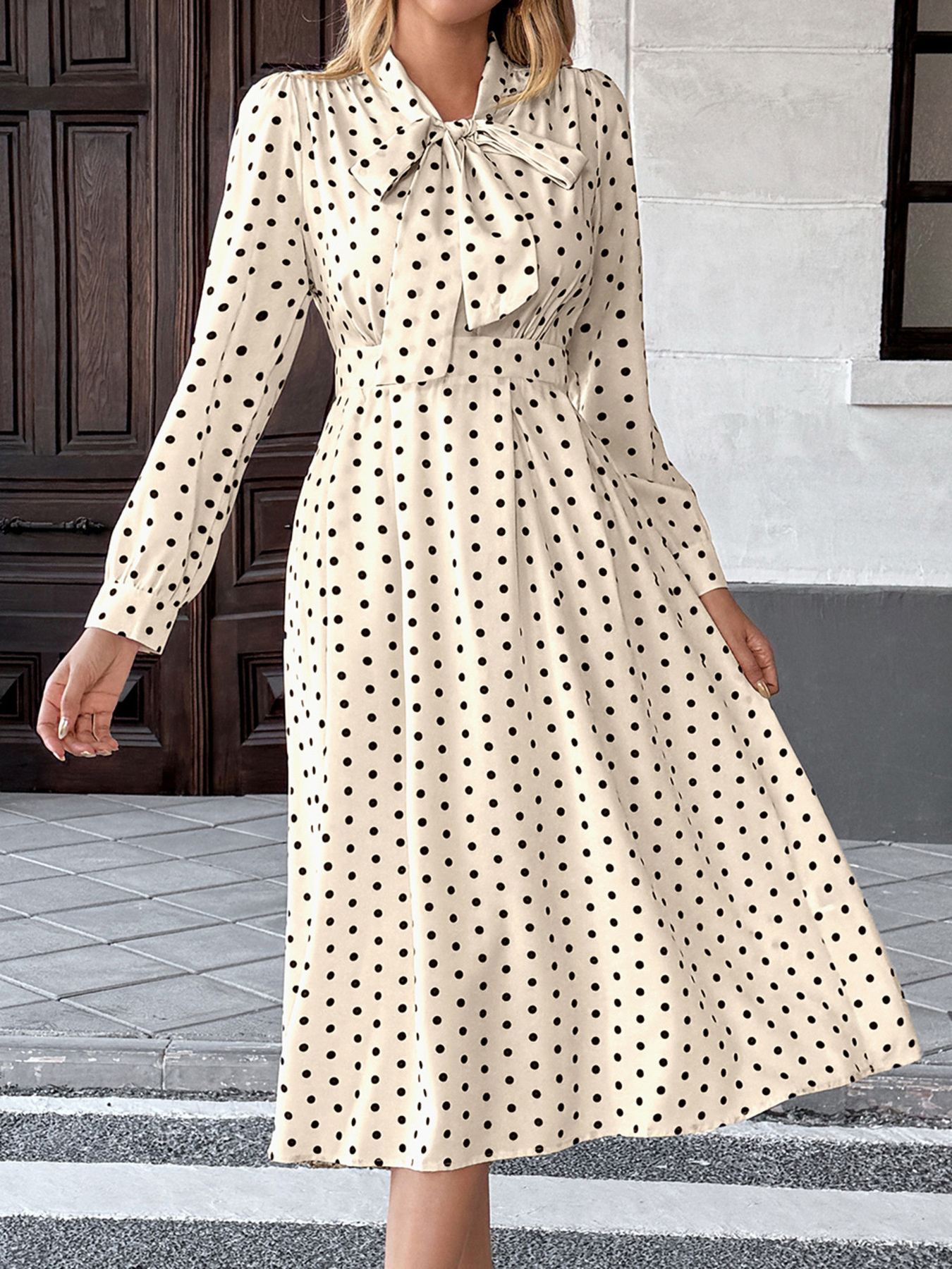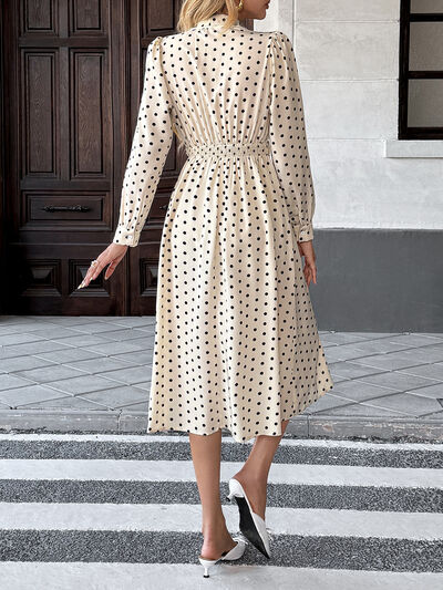 Polka Dot Tie Front Long Sleeve Midi Dress