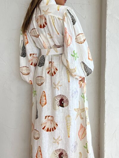 Printed Balloon Sleeve Maxi Shirt Dress