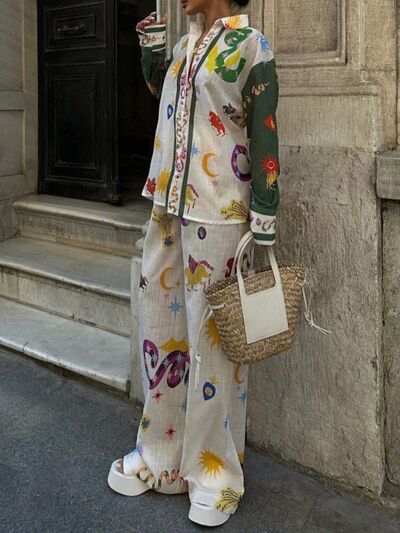 Printed Button Down Shirt and Pants Set