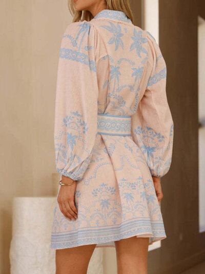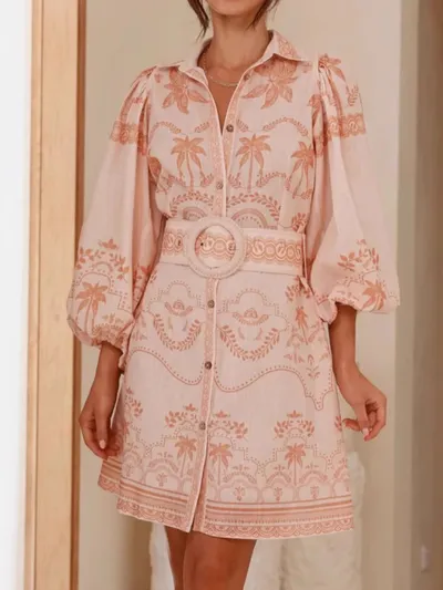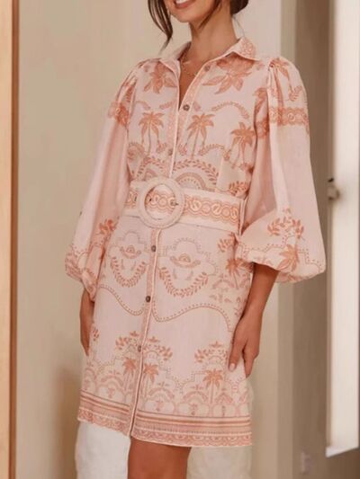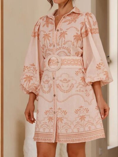 Printed Button Down Shirt Dress with Belt