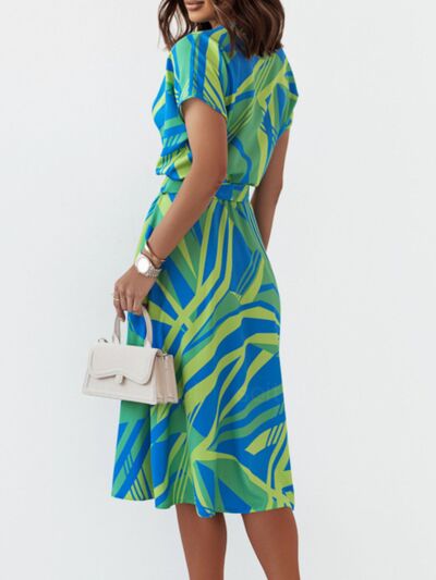 Printed Button Front Midi Dress with Belt