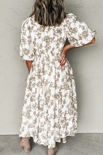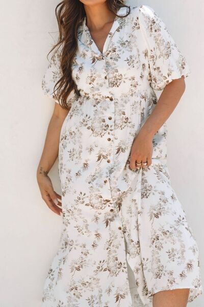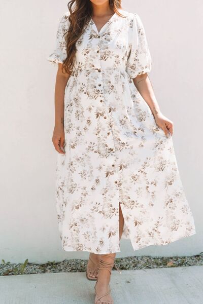 Printed Button Front Puff Sleeve Dress