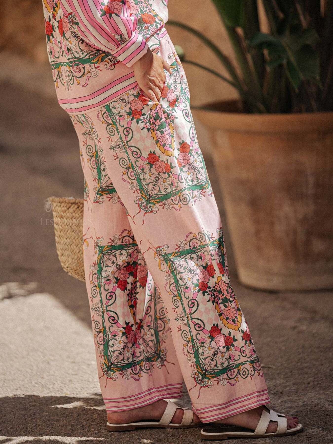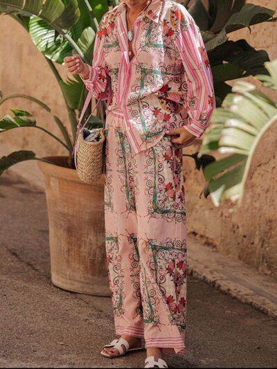 Printed Button Up Shirt and Pants Set