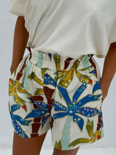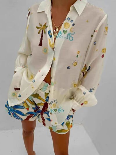 Printed Button Up Shirt and Shorts Set