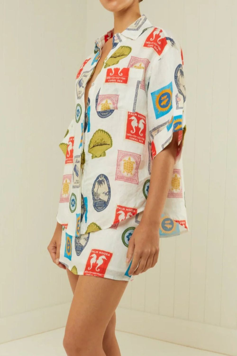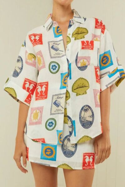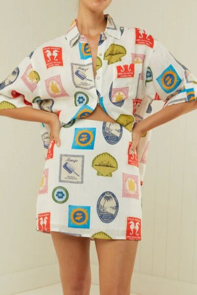 Printed Button Up Shirt and Skirt Set