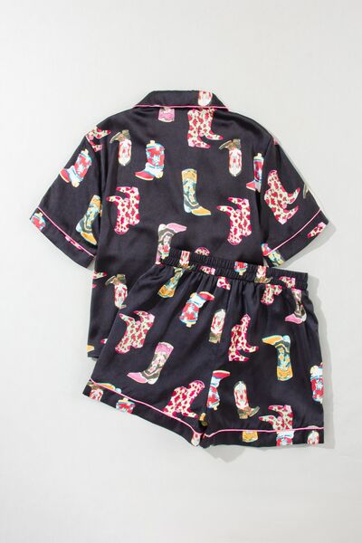 Printed Button Up Short Sleeve Top and Shorts Lounge Set