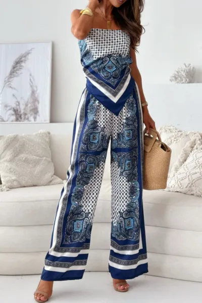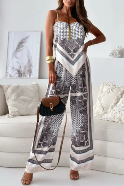 Printed Cami and Wide Leg Pants Set