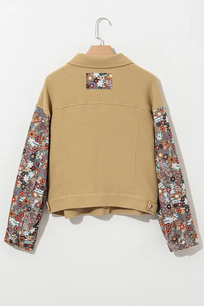 Printed Collared Neck Long Sleeve Jacket