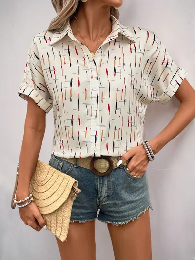 Printed Collared Neck Short Sleeve Shirt