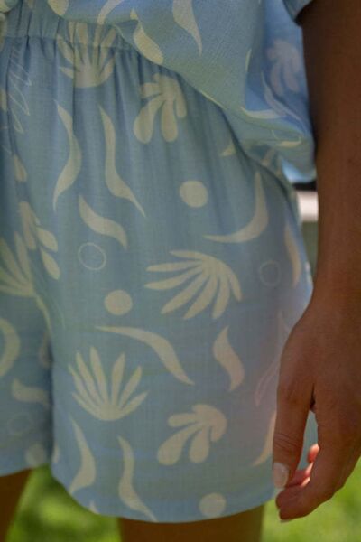 Printed Collared Neck Top and Shorts Set