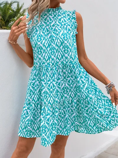 Printed Frill Sleeveless Tiered Mini Dress