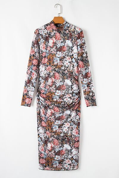 Printed Long Sleeve Midi Slim Dress