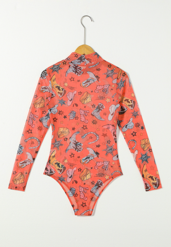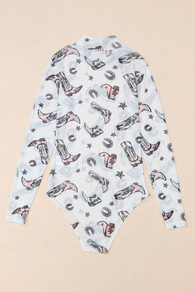 Printed Mock Neck Long Sleeve Bodysuit