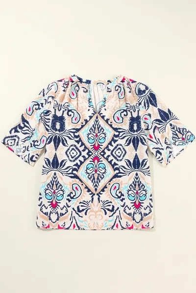 Printed Notched Half Sleeve Blouse