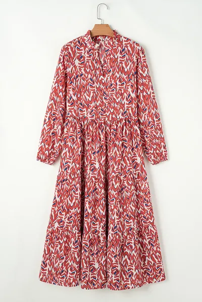 Printed Notched Long Sleeve Dress