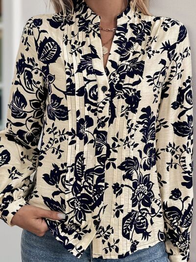 Printed Notched Long Sleeve Shirt