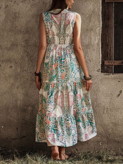 Printed Notched Sleeveless Dress