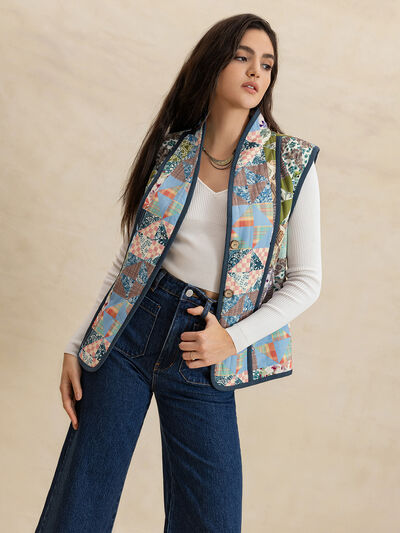 Printed Patchwork Contrast Piping Vest