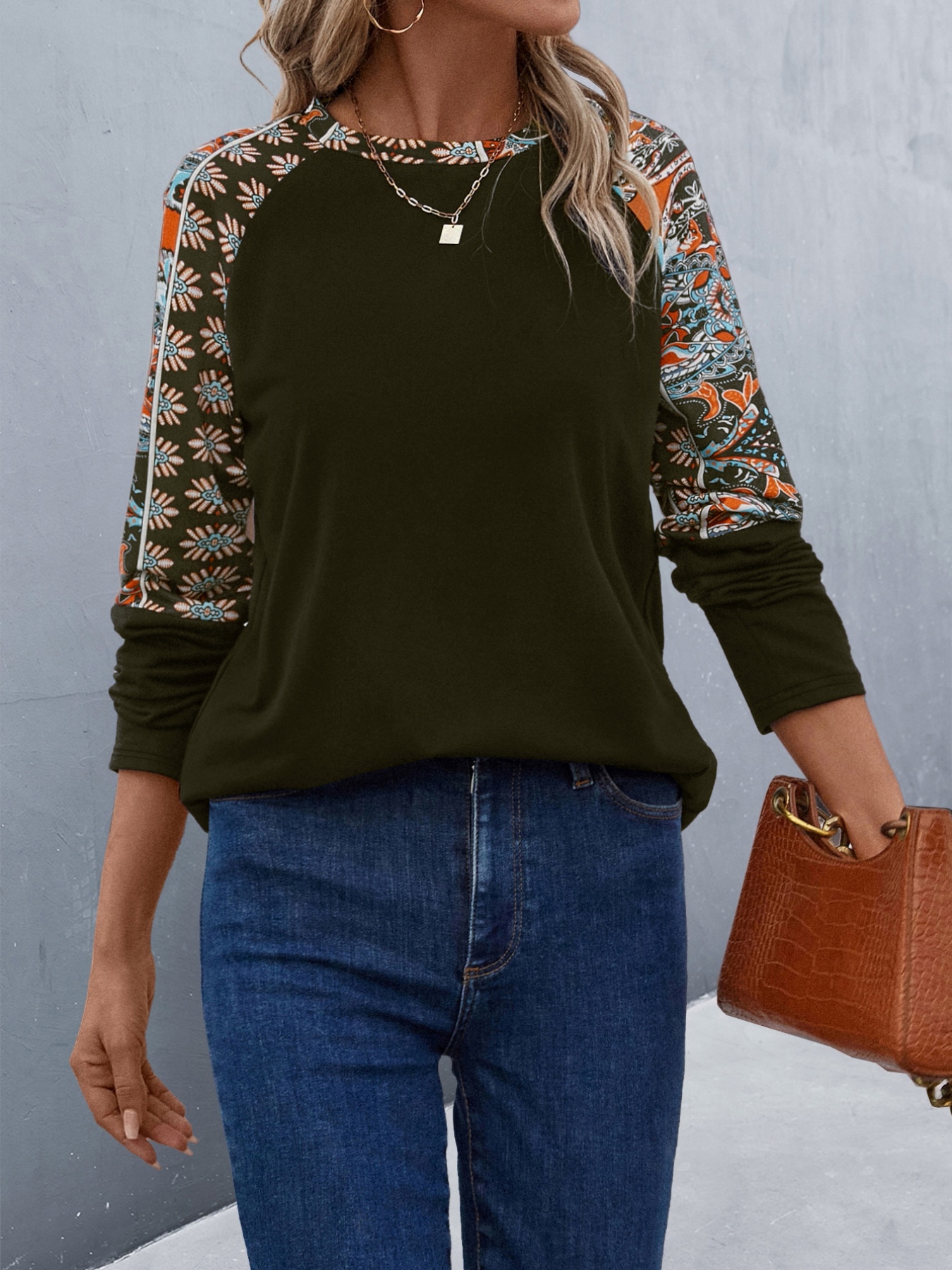 Printed Raglan Sleeve Round Neck T-Shirt