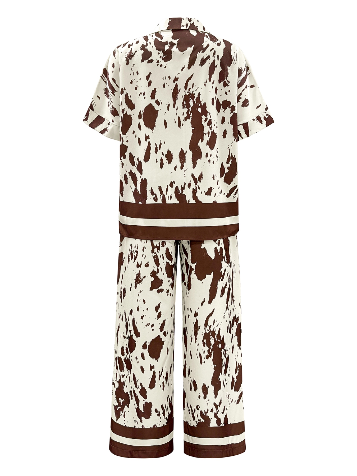 Printed Relaxed Fit Top and Wide Leg Pants Set