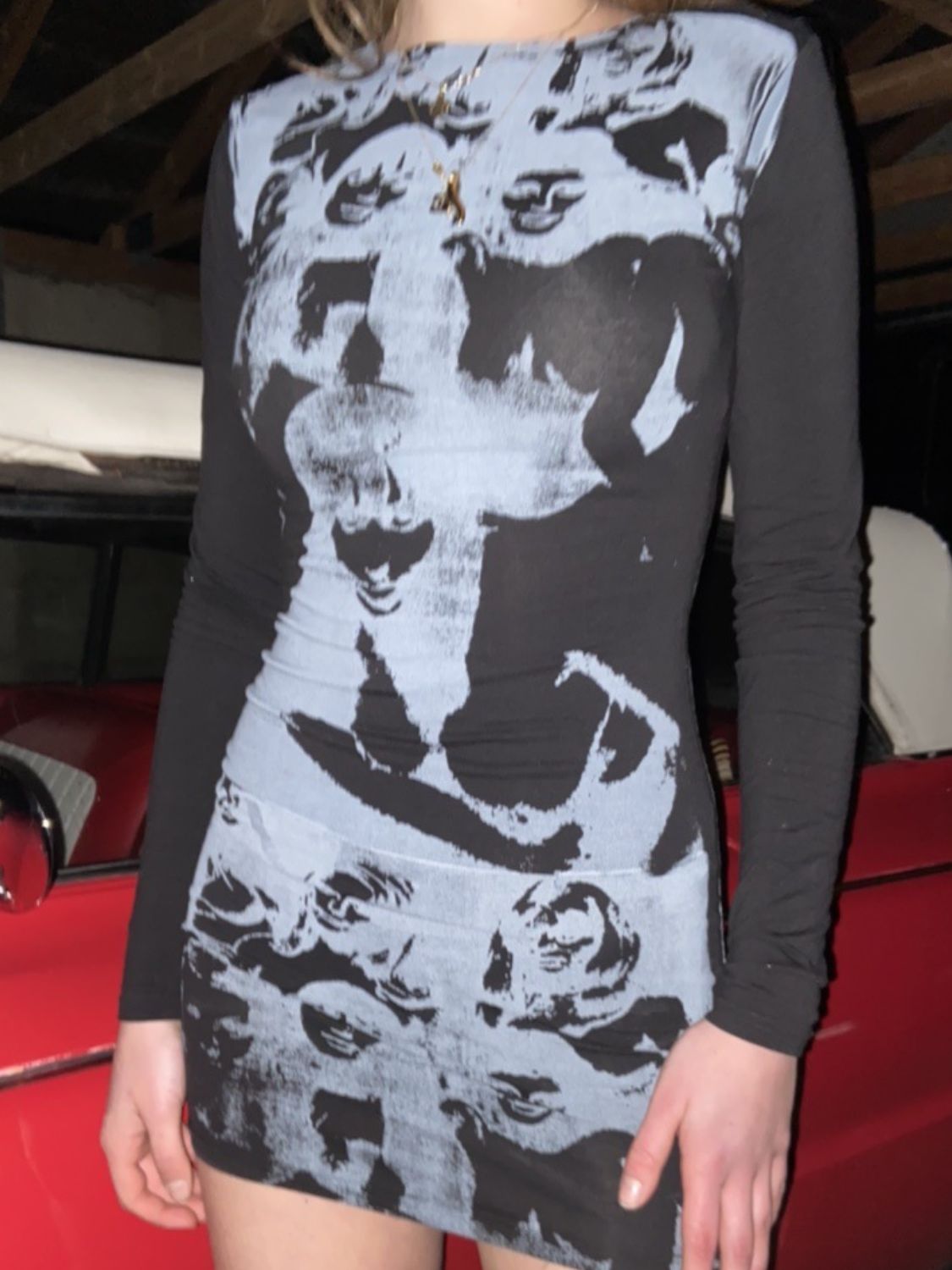 Printed Round Neck Long Sleeve Mini Dress