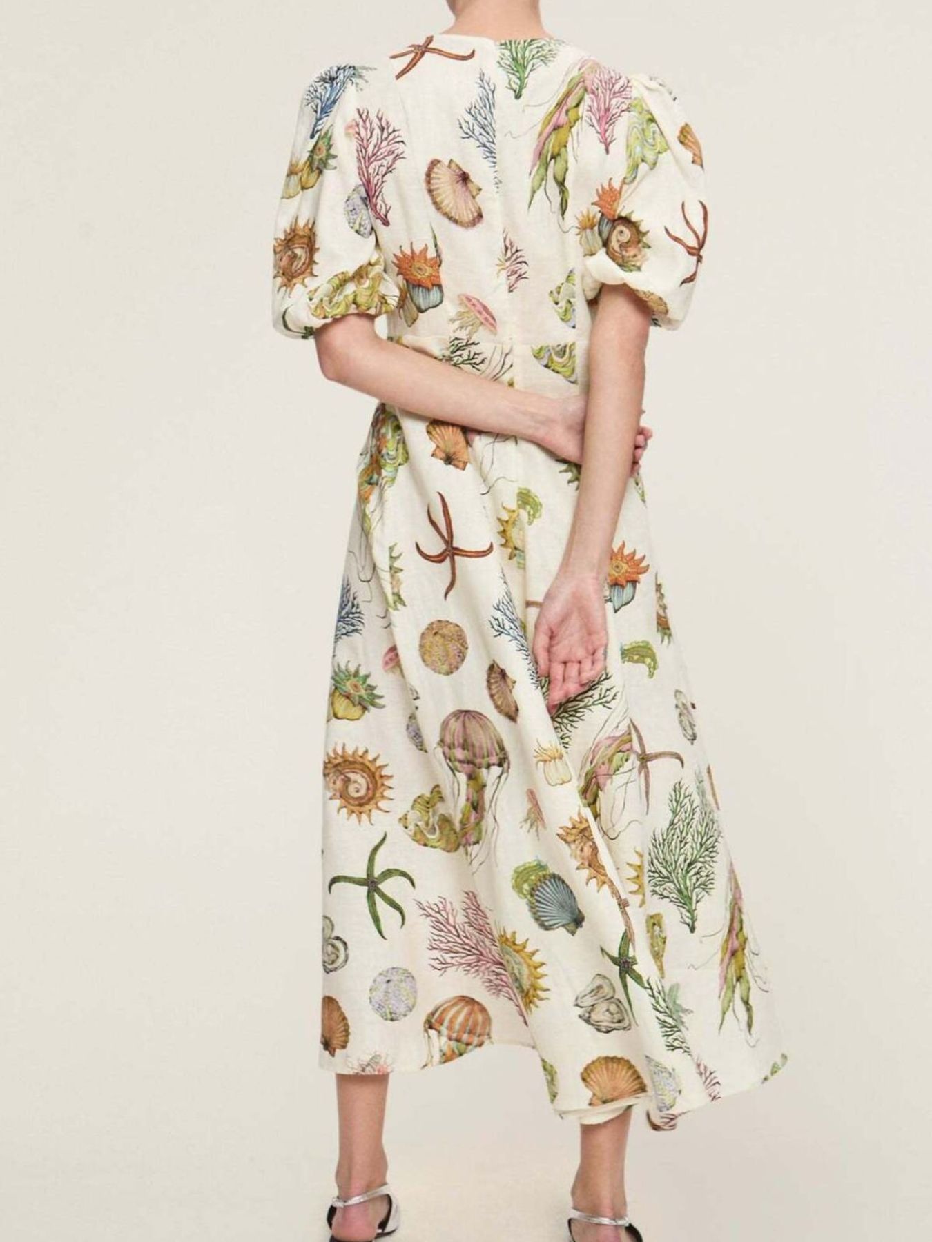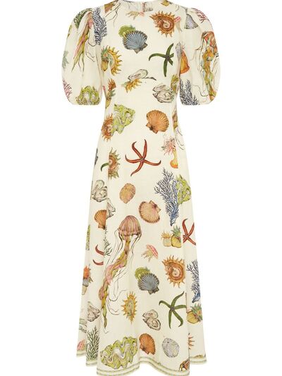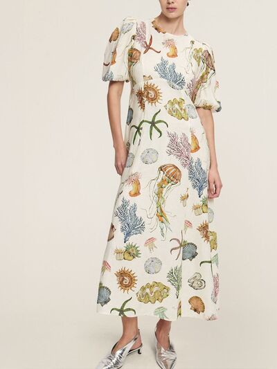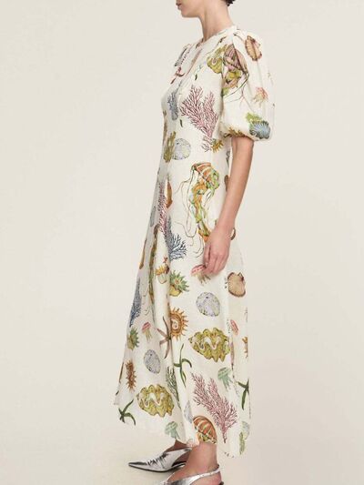 Printed Round Neck Puff Sleeve Dress