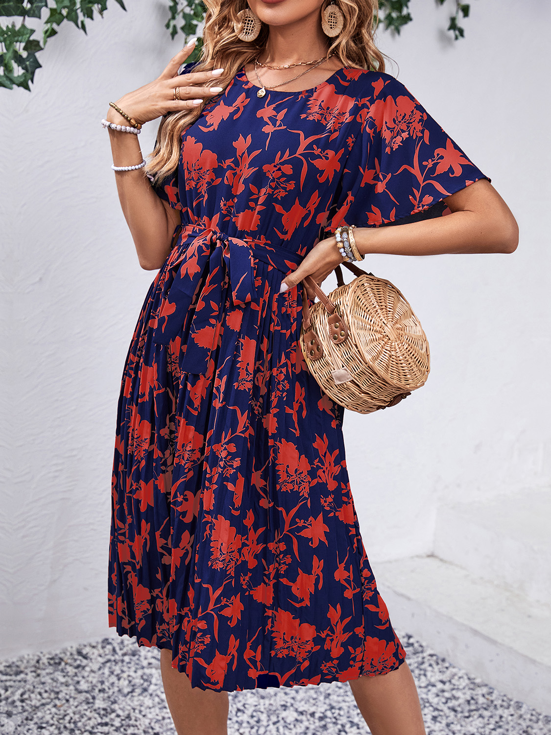 Printed Round Neck Short Sleeve Dress