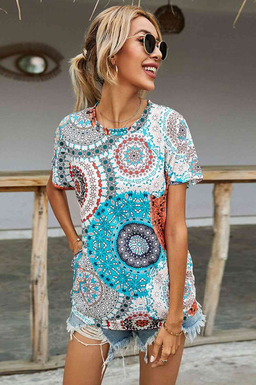 Printed Round Neck Short Sleeve Tee