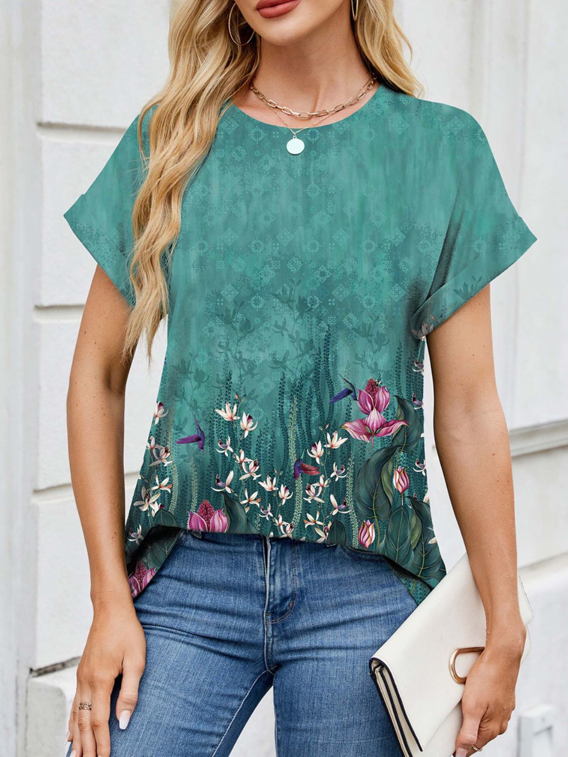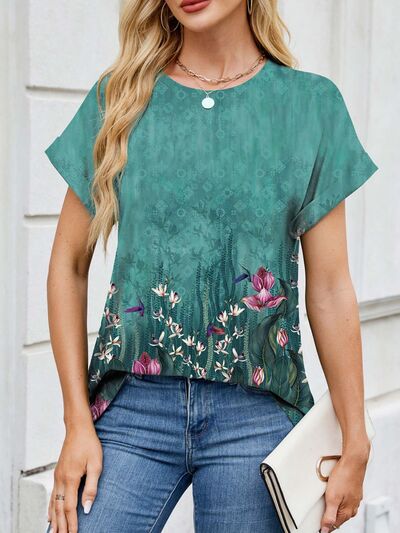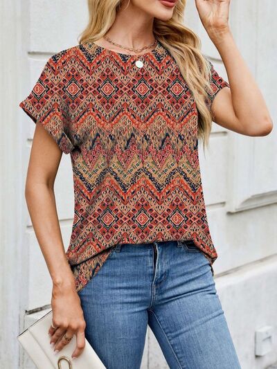 Printed Round Neck Short Sleeve Top