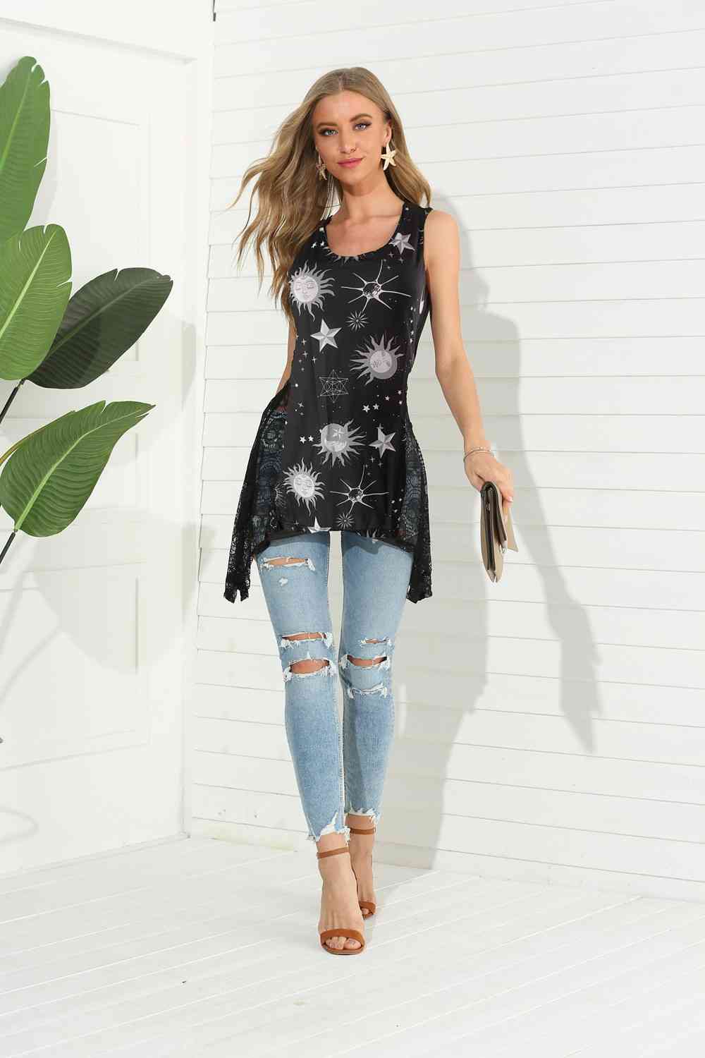 Printed Scoop Neck Strappy Tank