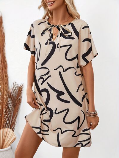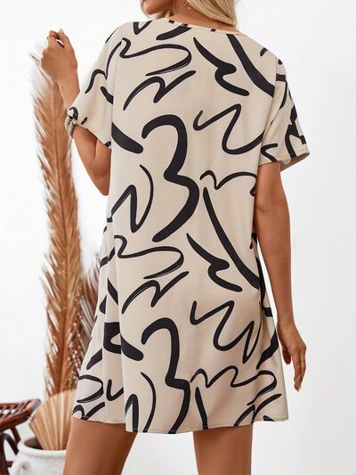 Printed Short Sleeve Mini Dress