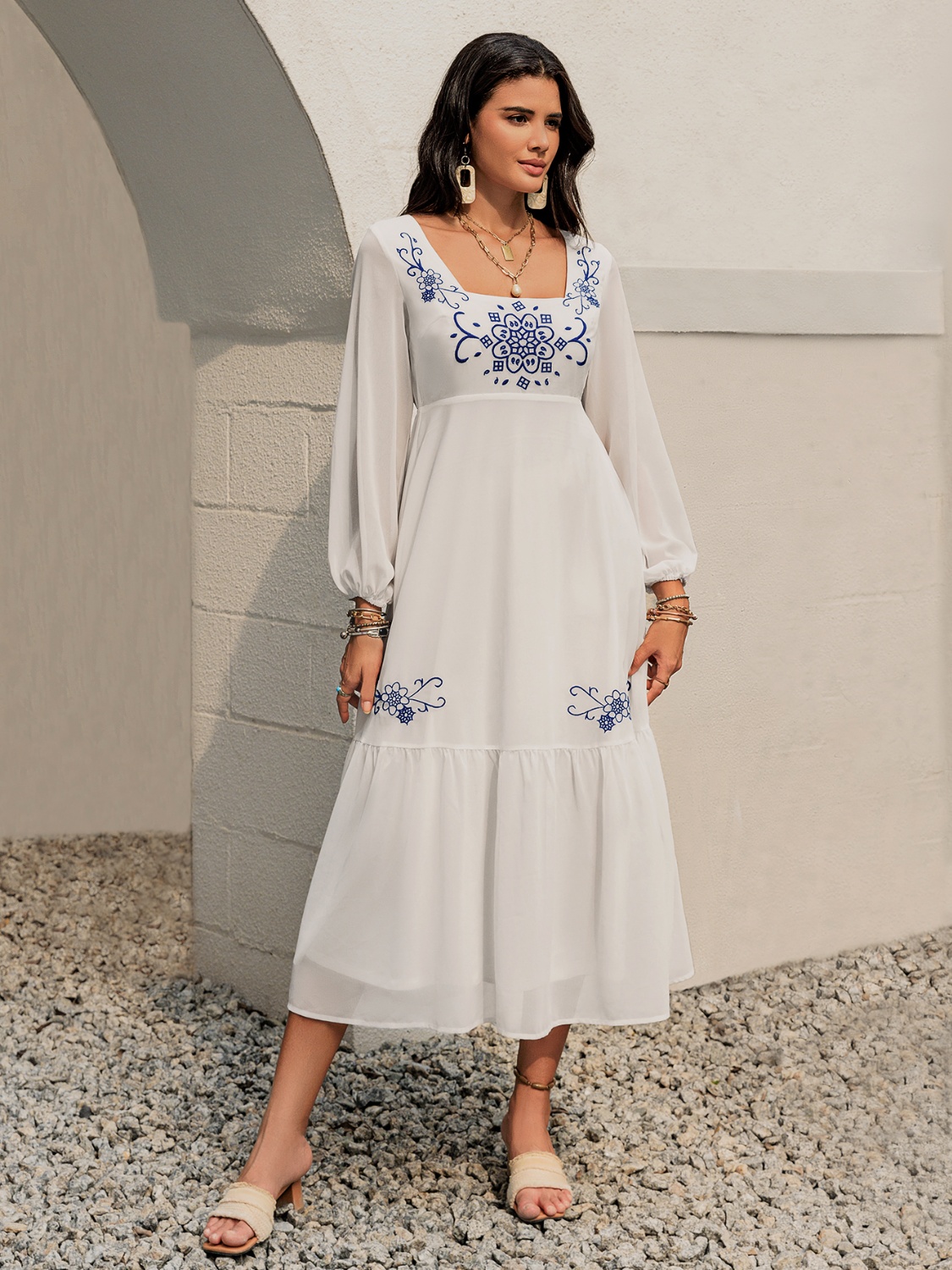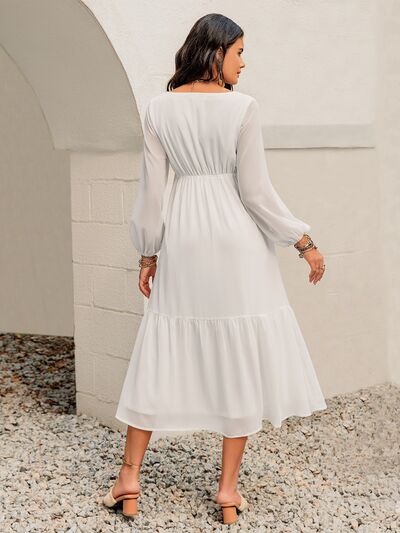 Printed Square Neck Balloon Sleeve Dress