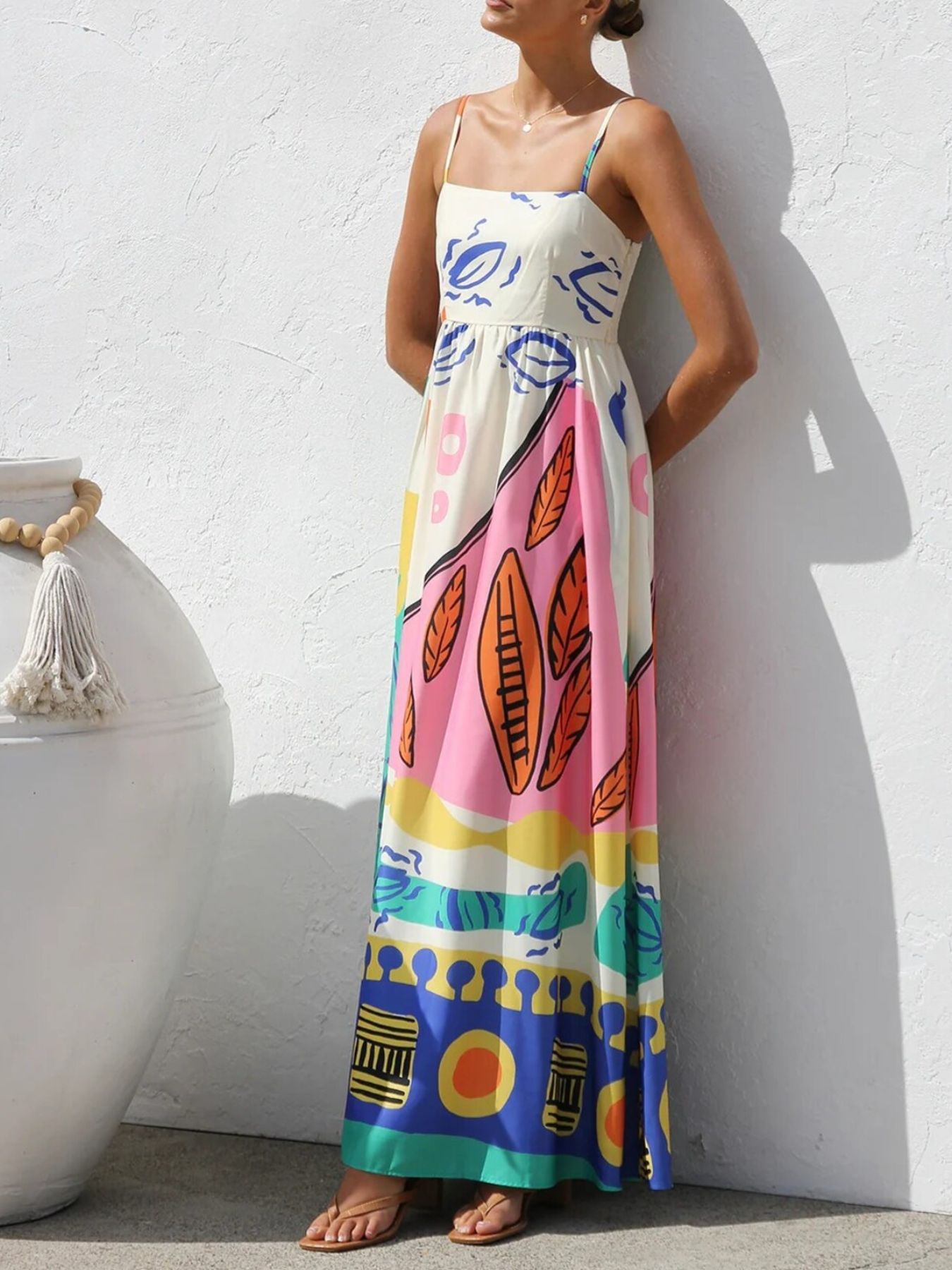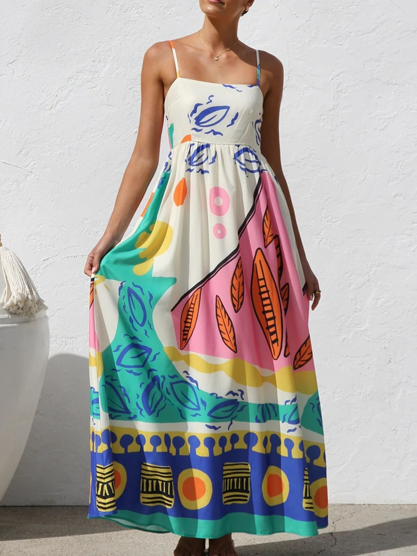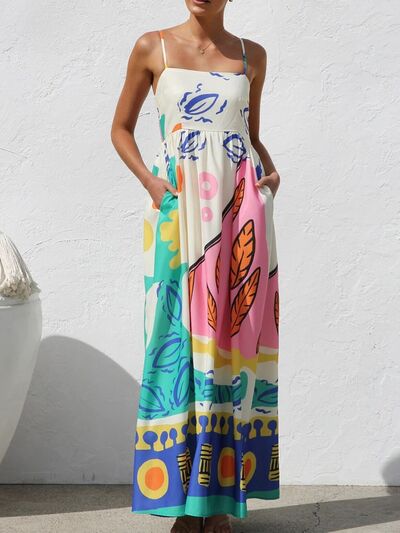 Printed Square Neck Maxi Cami Dress
