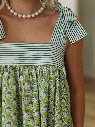 Printed Square Neck Tie Shoulder Mini Dress